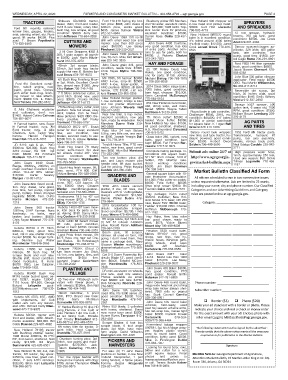 dition. 18.4-42 90% rubber: exc. cond., FTH 600. Cliff General square baler with 10- Market Bulletin Classified Ad Form